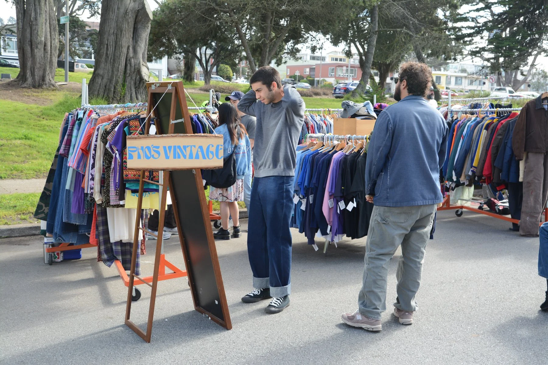 One of the things I find most entertaining about being in the vintage trades, is that there’s so much room for your own creativity and interpretation. Not to mention, it’s a good thing for the environment to recycle fabrics and clothing rather than just rely on something like ‘fast fashion’ or following the latest trends. In October, I had the chance to work professionally as the event photographer for the Second Hand Saturdays in the Outer Sunset District, where I hung out with some of my old vintage friends, and made some new ones; who’re cutting their teeth at running vintage popups, and aspiring to be entrepreneurs in San Francisco. What follows are some inventive boutique owners and some of their fashionista customers. (even I got into the act by picking up some vintage garments for my own Cheongsam creations at home)