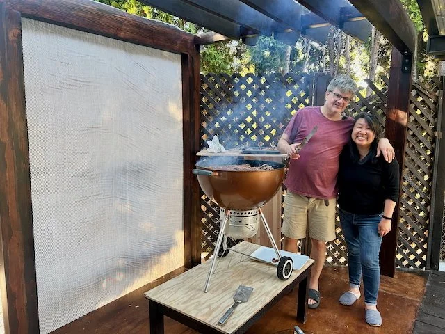 We weren’t the only one’s up to DIY & do it yourself creative projects, here my brother Fred cooks some Kalbi beef on the grill underneath his handmade Lanai with Paula.